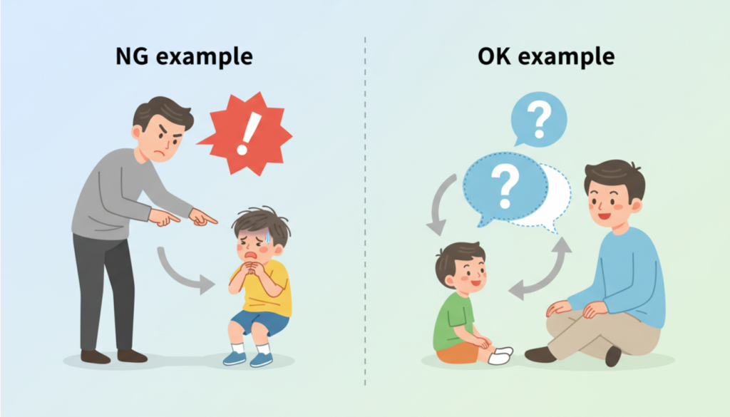 - 「自分で準備できたね、かっこいい!」(プロセスを具体的に褒める)