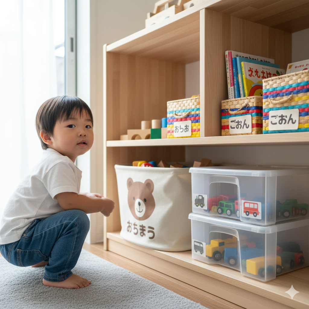 - 子どもに場所を決めてもらう:「これ、どこにあると使いやすいかな?」と意見を聞くことで、子どもに当事者意識が芽生えます。